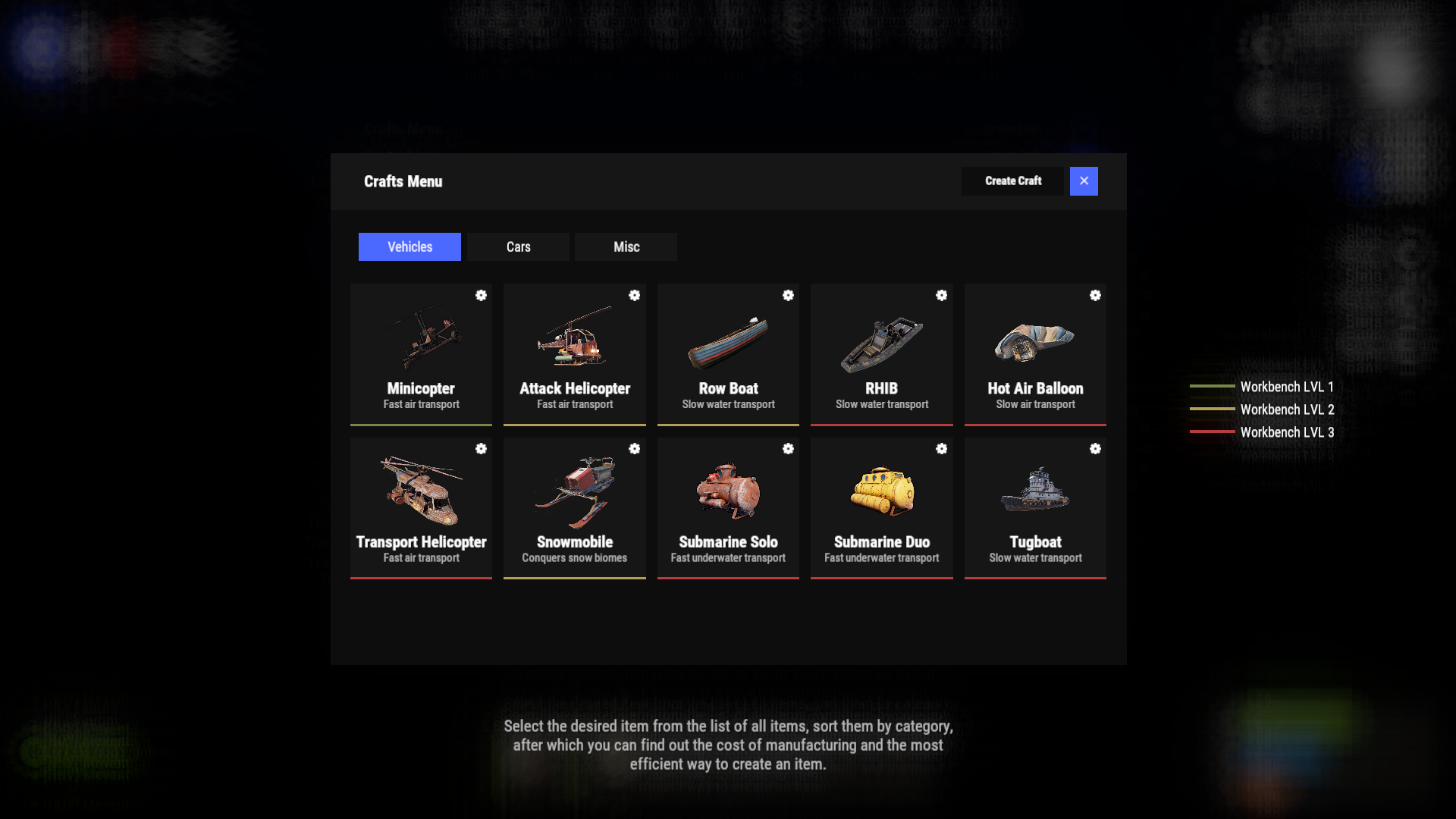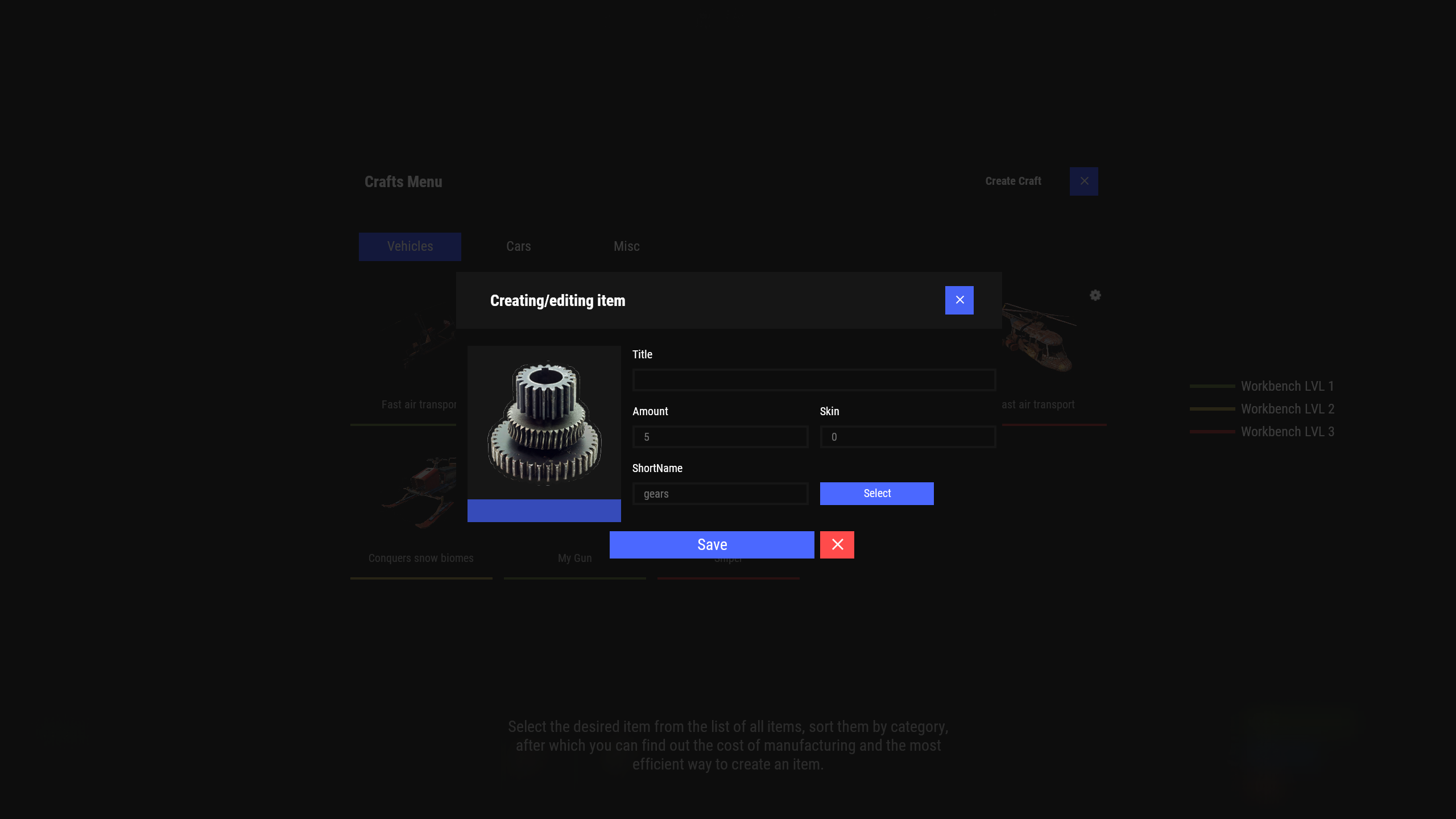 Система крафта, позволяющая создавать предметы, машины/транспорт, переработчики и многое другое!