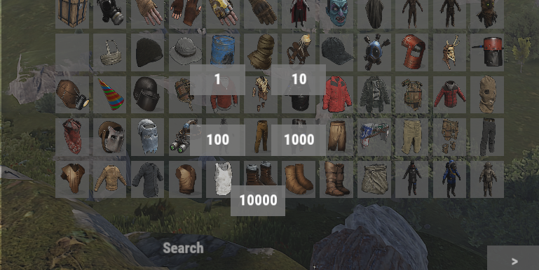 Плагин **F1 Item Menu** позволяет игрокам открывать интерактивное меню для выбора предметов в Rust и добавления их в инвентарь с помощью простой команды. Плагин предоставляет удобный интерфейс с функцией поиска и постраничной навигацией для комфортного просмотра доступных предметов.