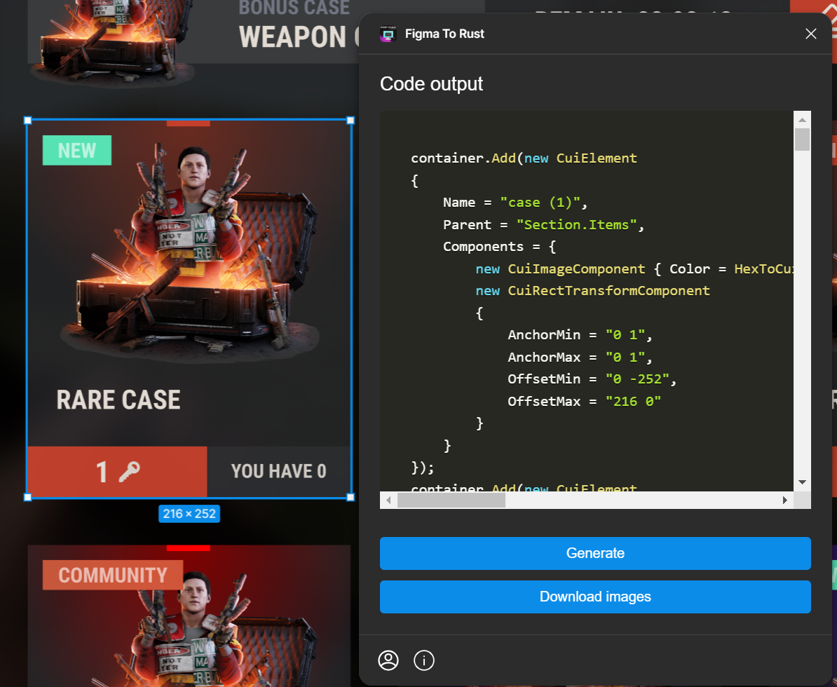 Откройте для себя Figma to Rust UI Export Plugin — мощный инструмент, разработанный для упрощения процесса конвертации интерфейсов из Figma в код UI, совместимый с игровыми плагинами Rust. Этот плагин позволяет дизайнерам и разработчикам бесшовно переносить свои макеты из Figma в функциональные элементы интерфейса для игр на базе Rust, повышая эффективность рабочего процесса и сохраняя точность дизайна.