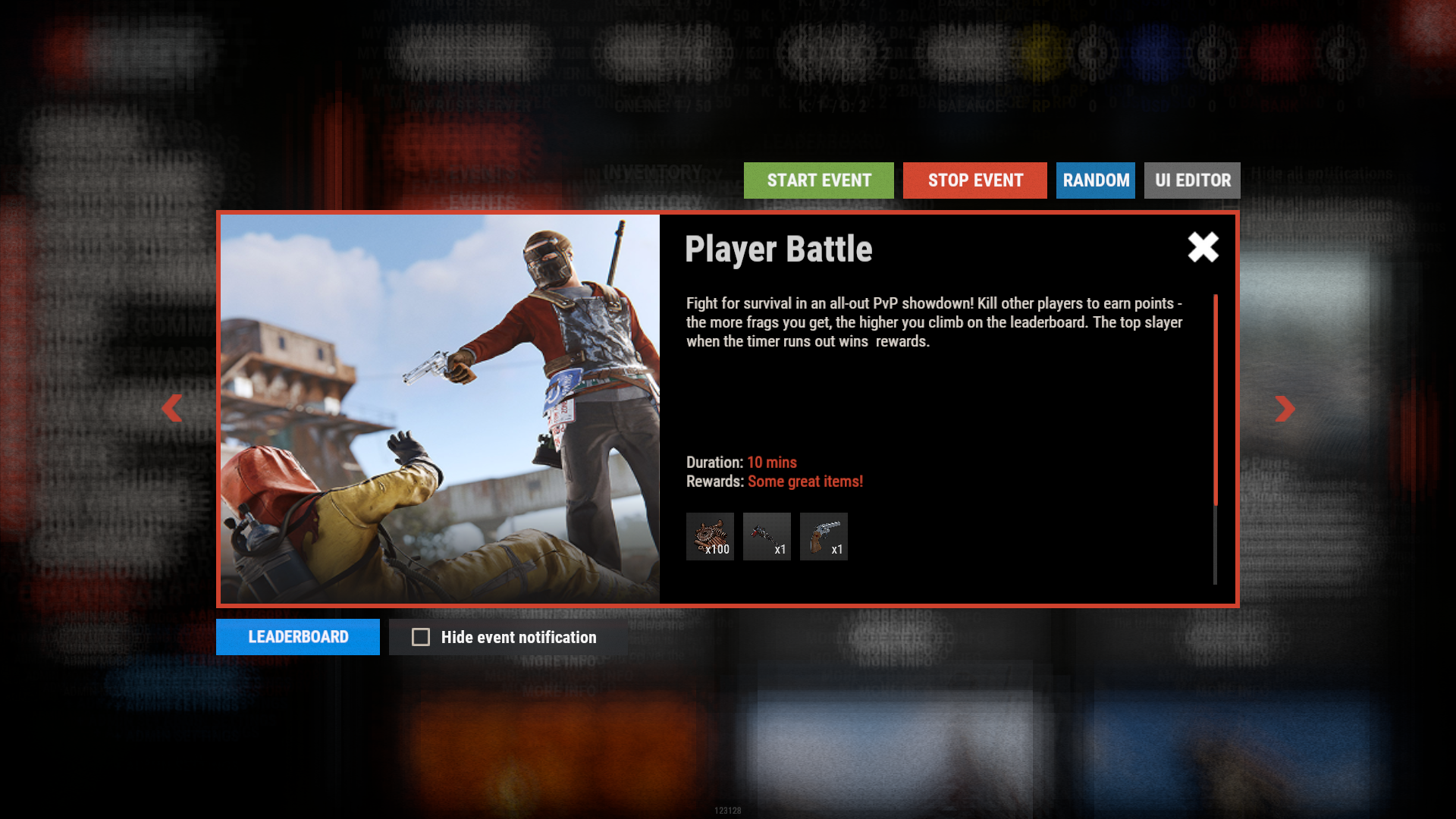 MultiEvents Expansion Pack 1 добавляет 5 дополнительных событий: уничтожение бочек, PvP-сражения, битвы с NPC и сбор ресурсов. Для работы данного пака требуется основной плагин MultiEvents.