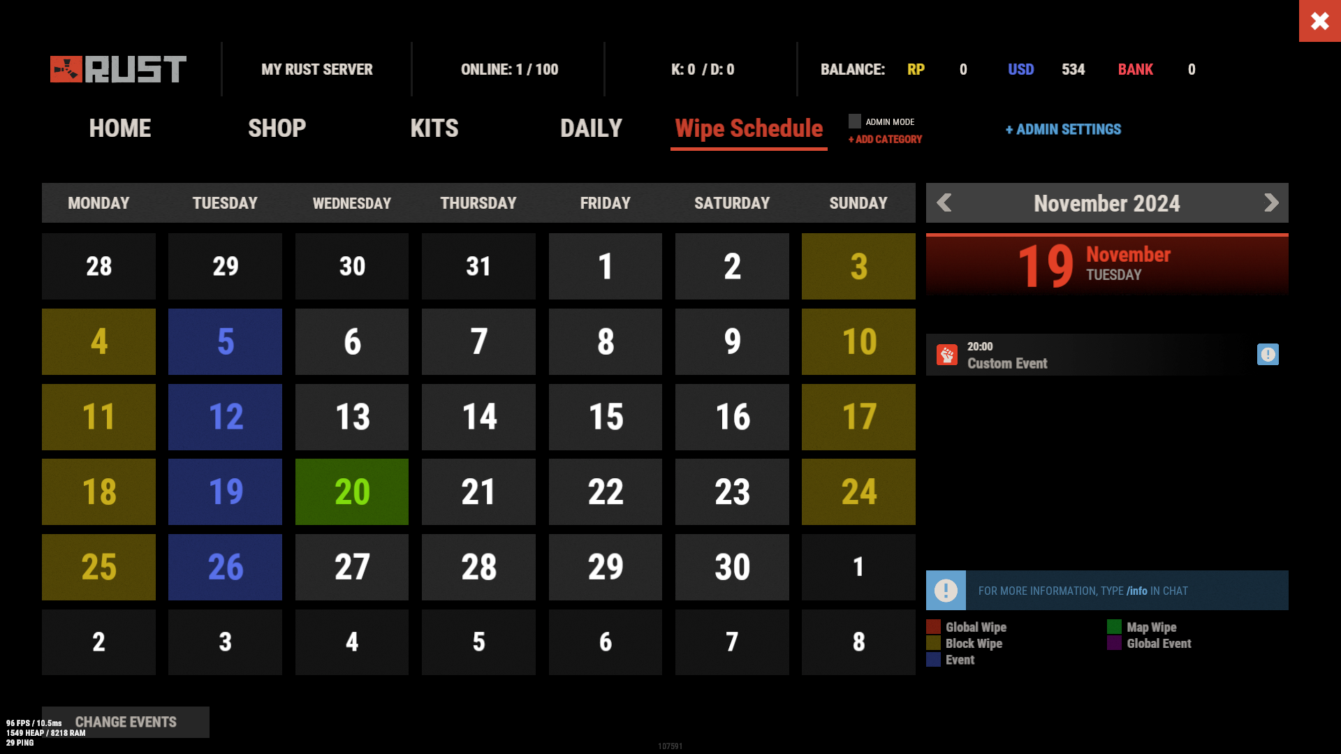 Идеальное решение для владельцев серверов RUST. Плагин даёт полный контроль над расписанием серверных событий, позволяя создавать уникальные графики, которые автоматически подстраиваются под ваши задачи.
